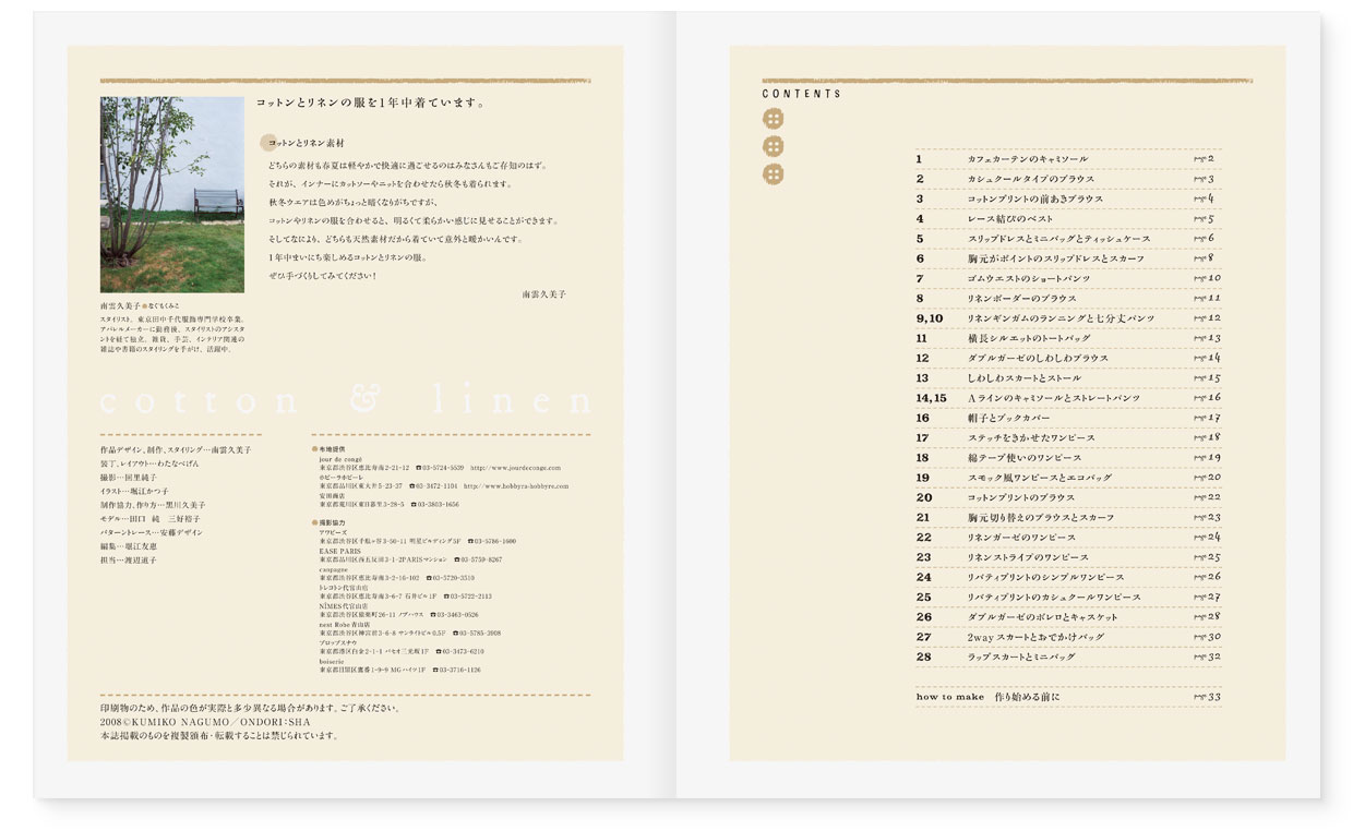 Book Design 書籍|『まいにち手づくり服 1年中着るコットンとリネンの服』 ONDORI