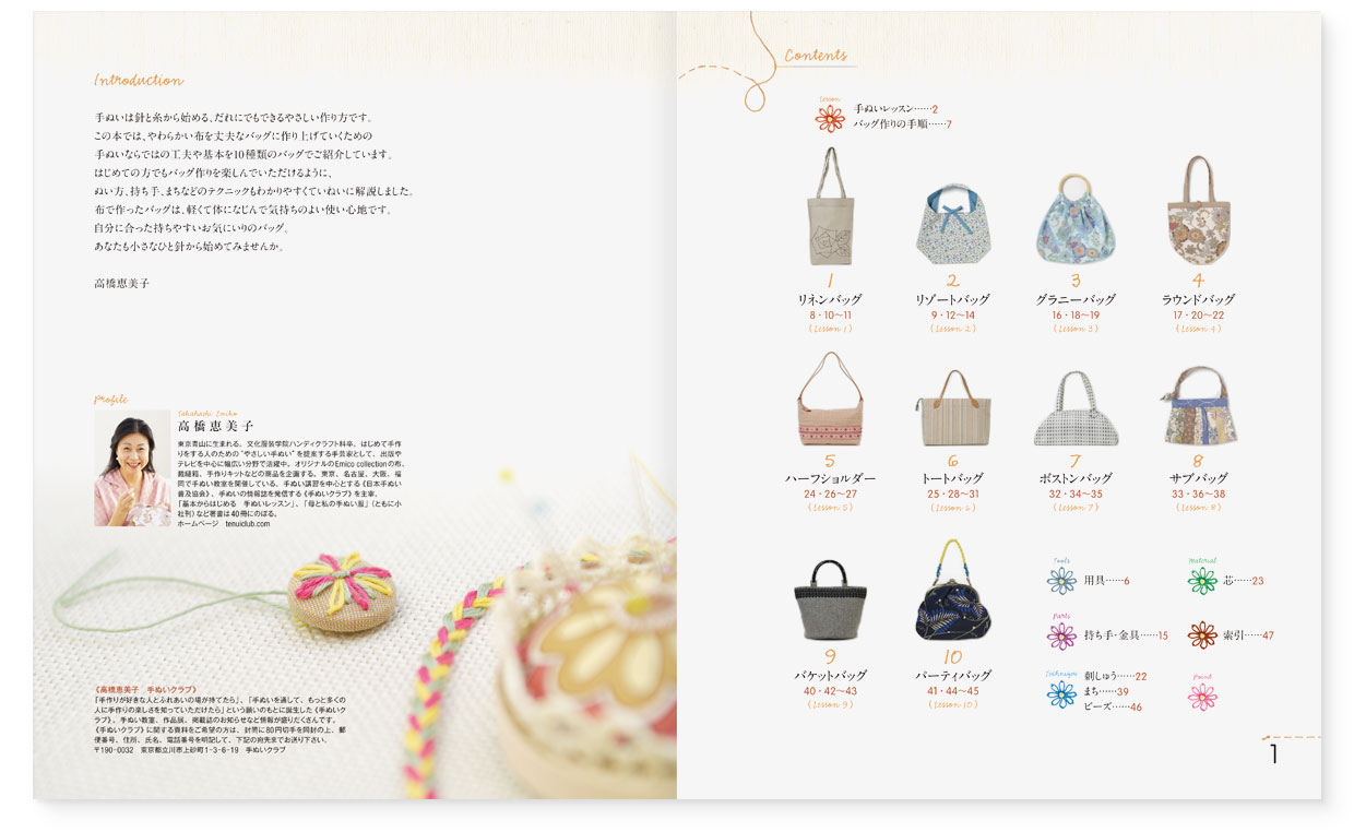 書籍|『基本からはじめる手ぬいのバッグ』 ONDORI|高橋恵美子